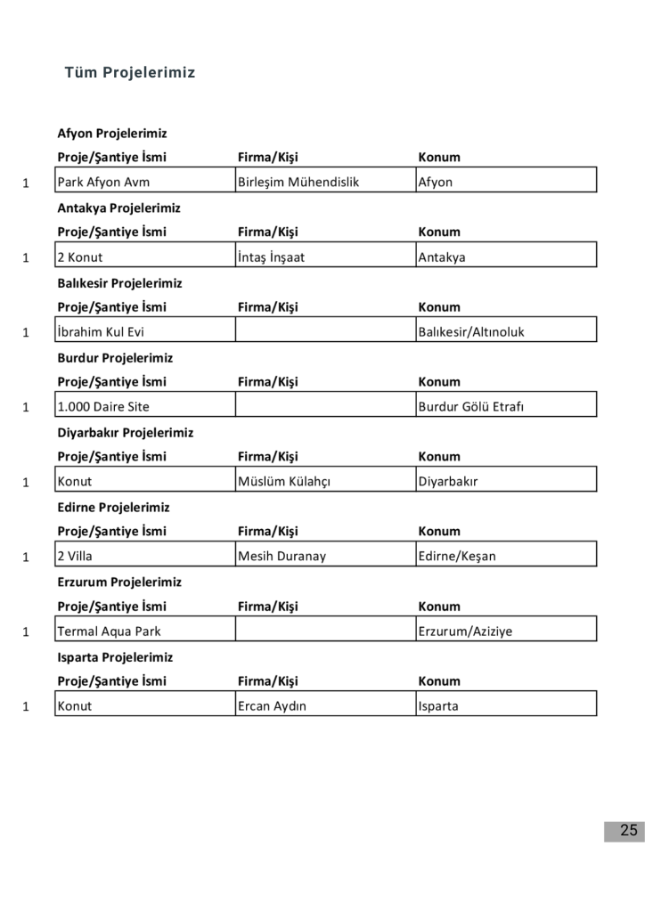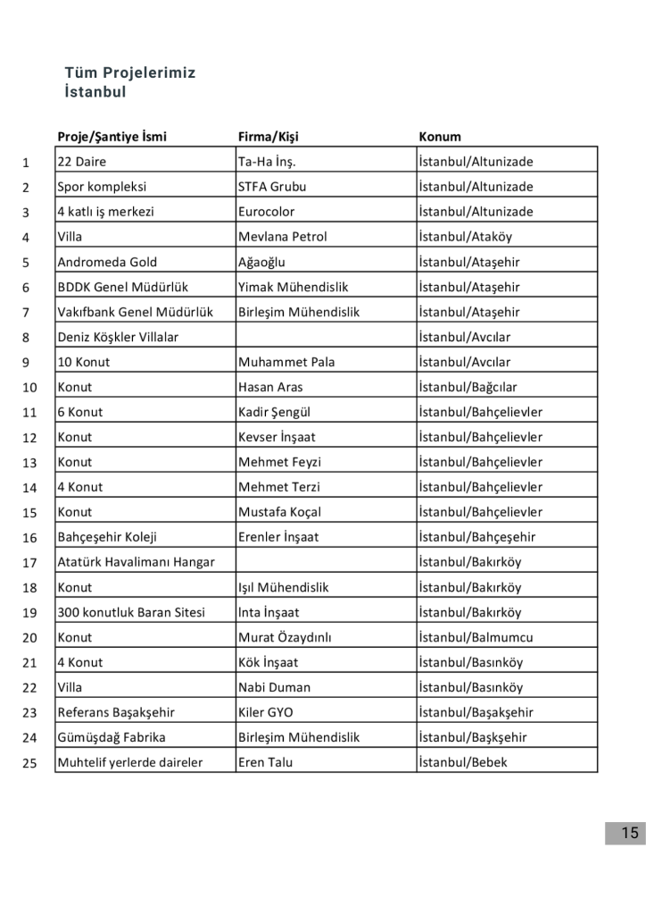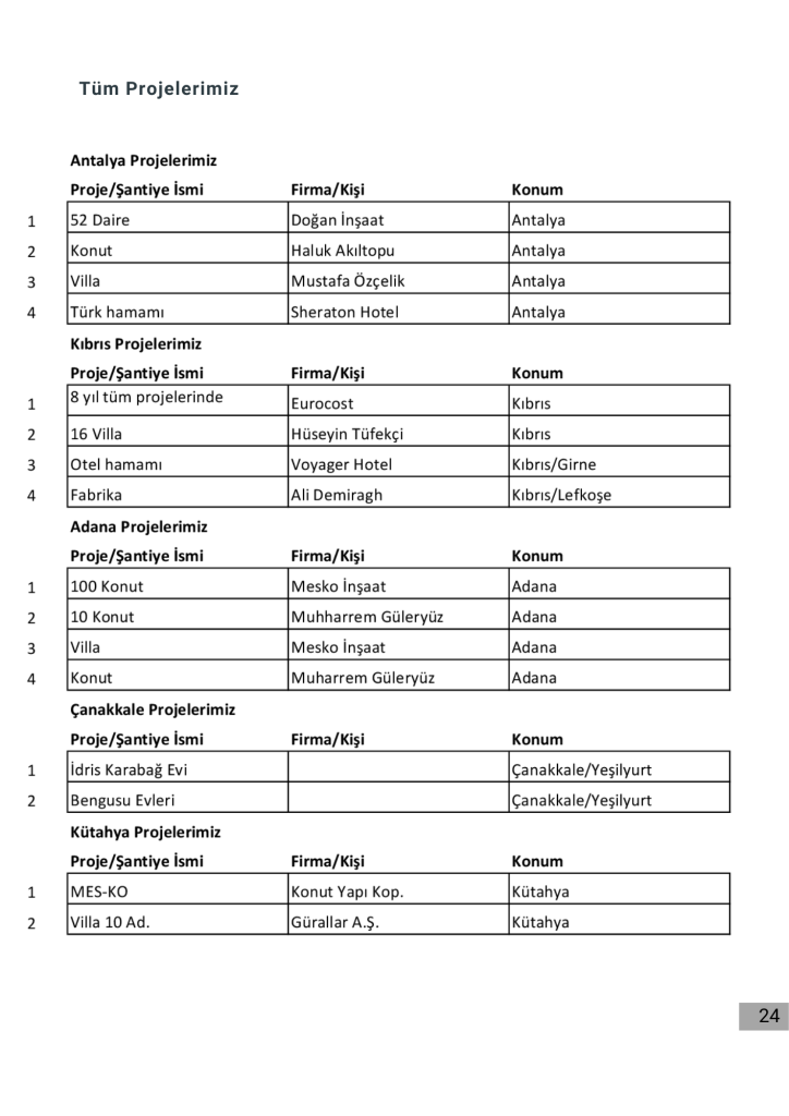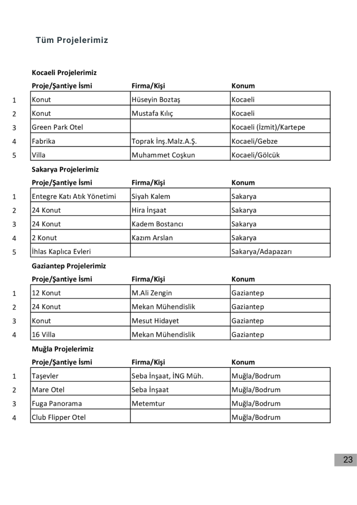 Projelerimizin tamamı için firmamızın katalogdaki projelerimiz bölümüne bakabilirsiniz.