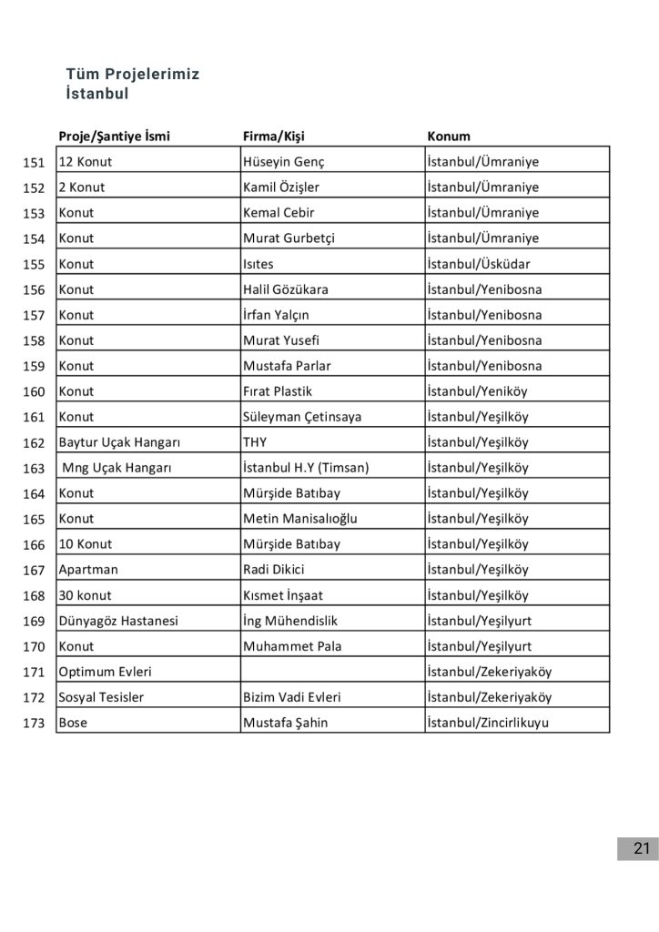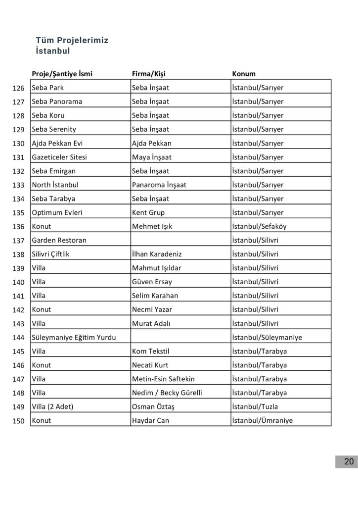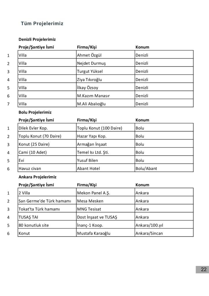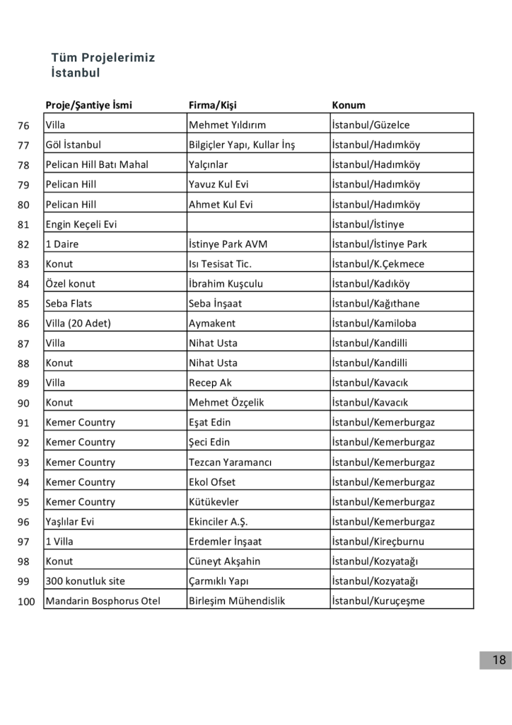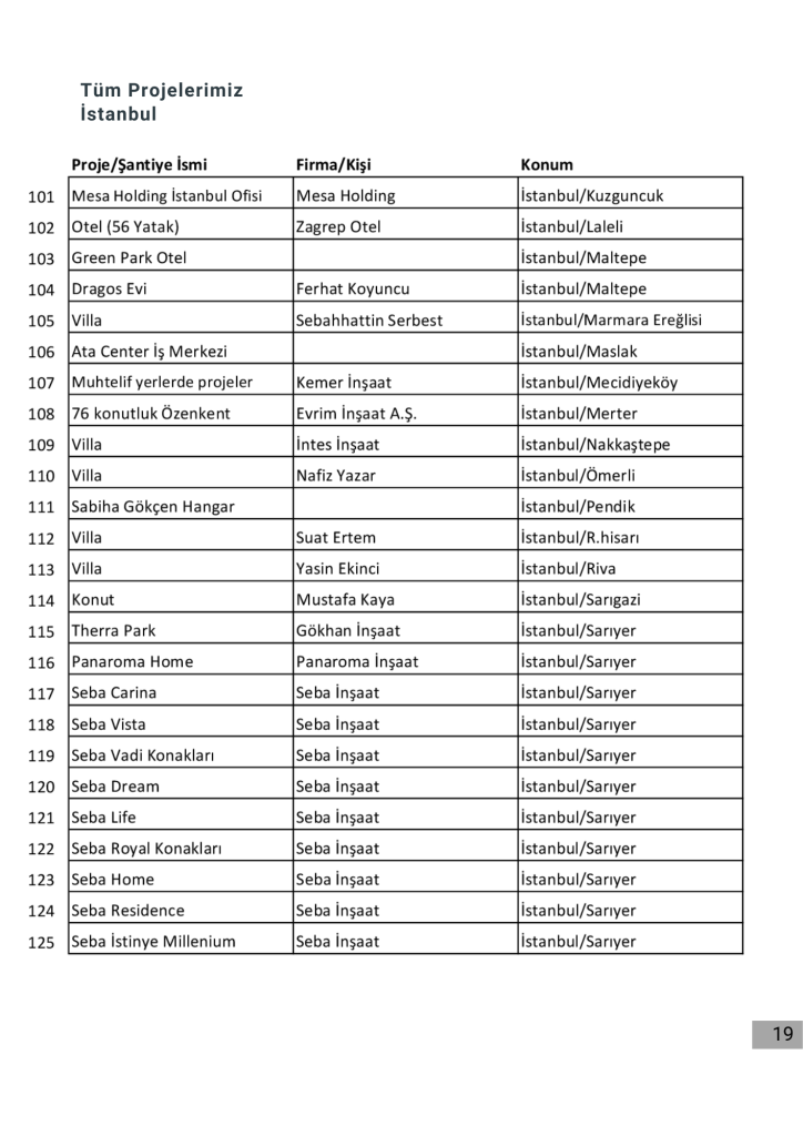 Projelerimizin tamamı için firmamızın katalogdaki projelerimiz bölümüne bakabilirsiniz.